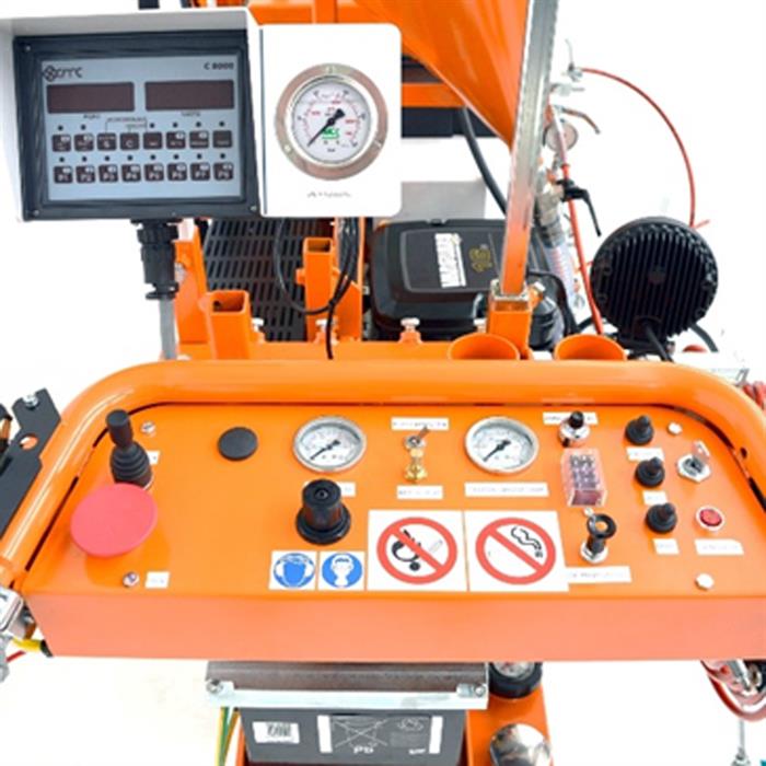 Självgående airless vägmarkeringsmaskin med hydraulisk drivning. Idealisk för markering av kommuner och städer eller till och med större parkeringsplatser. Maskinen kan även utrustas med sprutplastsystem. Två framhjul, ett styrbart bakhjul.